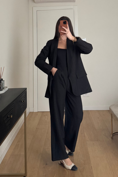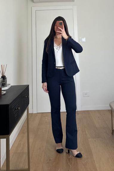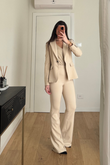 TWENTY Tailleur stretch composto da pantalone a zampa elasticizzato e blazer monopetto.
