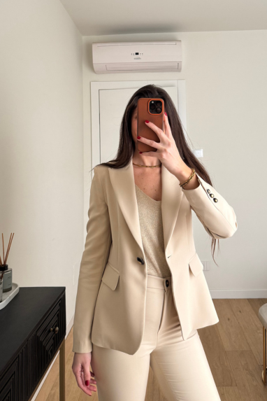 TWENTY Tailleur elasticizzato composto da pantalone con coulisse in vita e blazer monopetto.