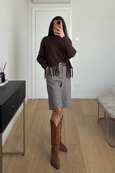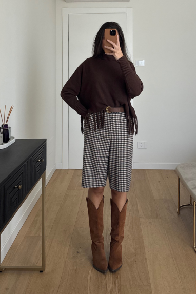 Bermuda micro check con tasche laterali, chiusura classica bottone e cerniera.