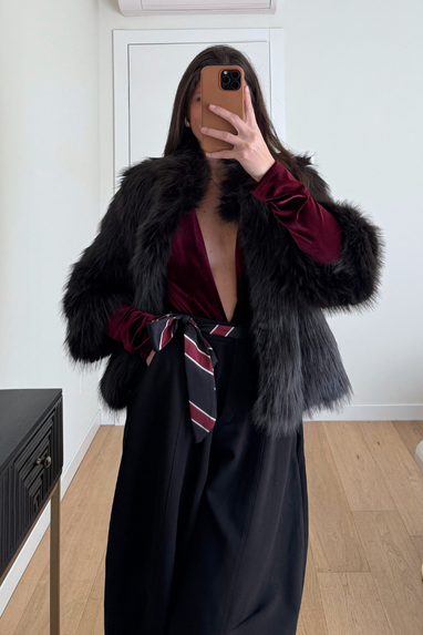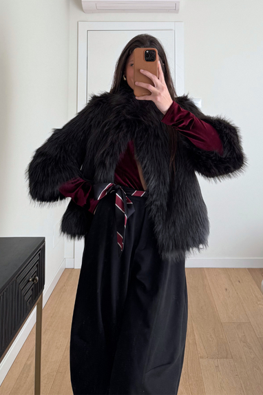 ECO Eco pelliccia manica tre-quarti, bottoni a scomparsa.