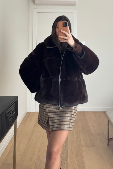 ECO Ecopelliccia con cerniera a vista e tasche laterali.