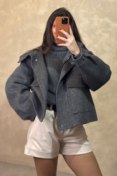 ECO Giacca in lana (70%), con cappuccio, cerniera e bottoni.