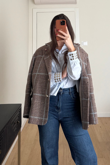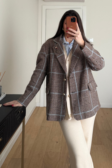 Giacca macro check contrasto azzurro
