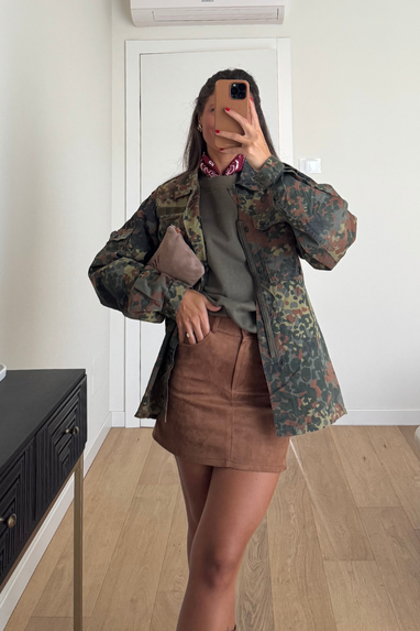 Giacca militare con chiusura frontale cerniera e bottoni.