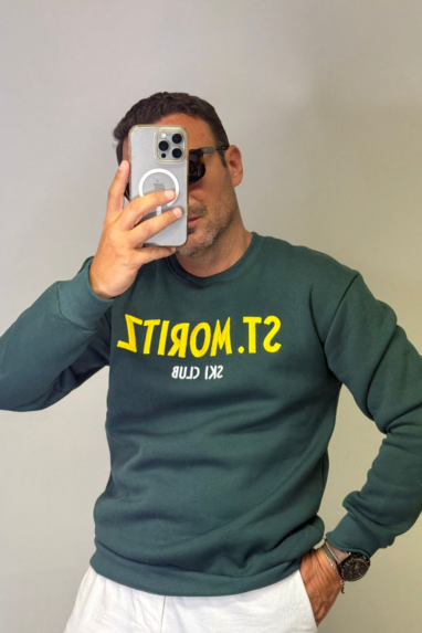 MAN Felpa girocollo con scritta St.Moritz.