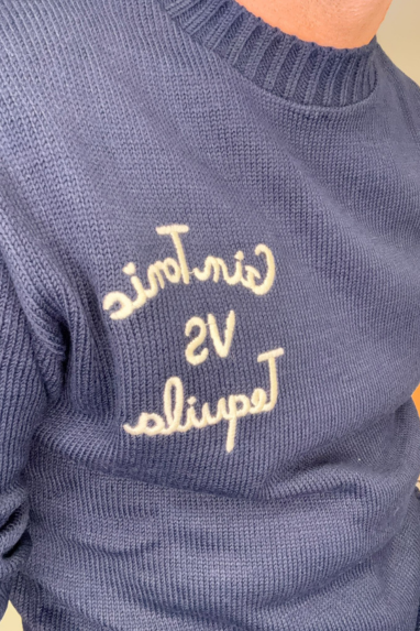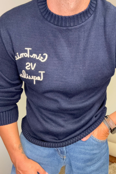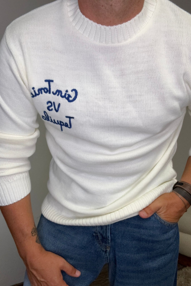 MAN Maglioncino girocollo con ricamo Gin Tonic VS Tequila.