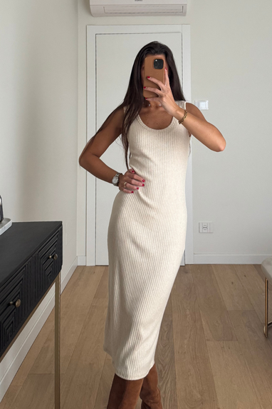 TWENTY Abito lungo a costine con spallina larga, tessuto elasticizzato.