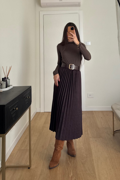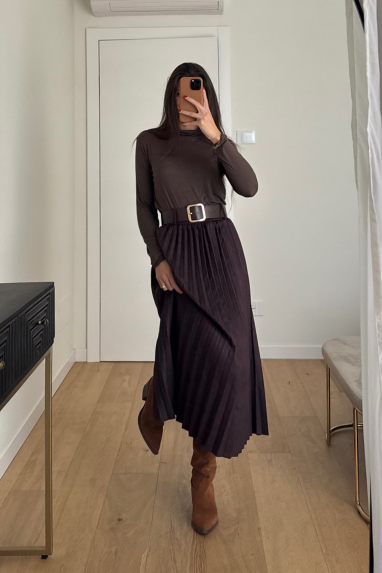 TWENTY Gonna plissettata in ciniglia con cintura removibile.